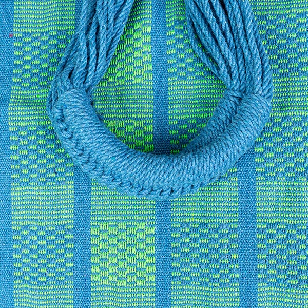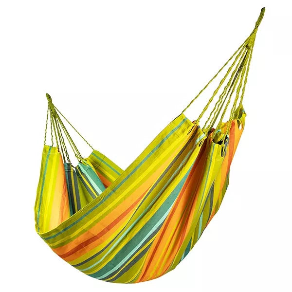 Heute werden Hängematten häufig aus bequemem und farbenfrohem Baumwollstoff hergestellt. Dabei verwenden wir schadstofffreie Baumwolle, die handgewebt wird.