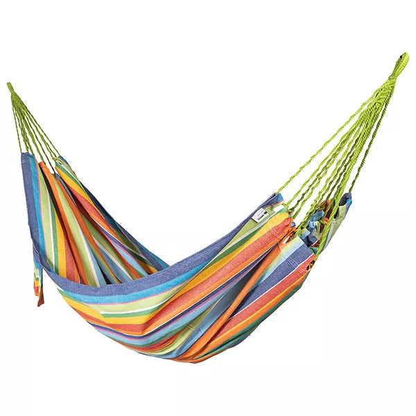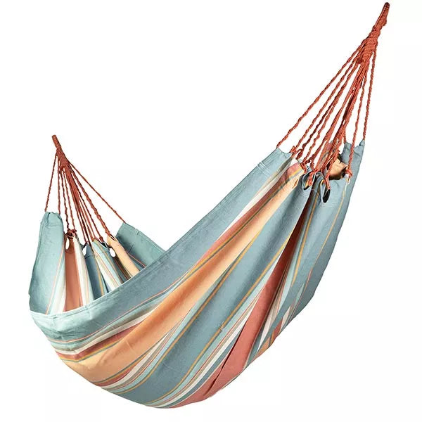 Ursprünglich wurden Hängematten aus dünnen, wasserabweisenden Pflanzenfasern gefertigt, die wie Fischernetze aussahen. So entstanden Outdoor-taugliche Hängematten. Heute werden sie aufgrund von Komfort, Material und Verarbeitung durch Polyester oder Mischgewebe ersetzt, das robust, schnelltrocknend und UV-beständig ist. Ideal für wetterfeste Outdoor-Hängematten.
