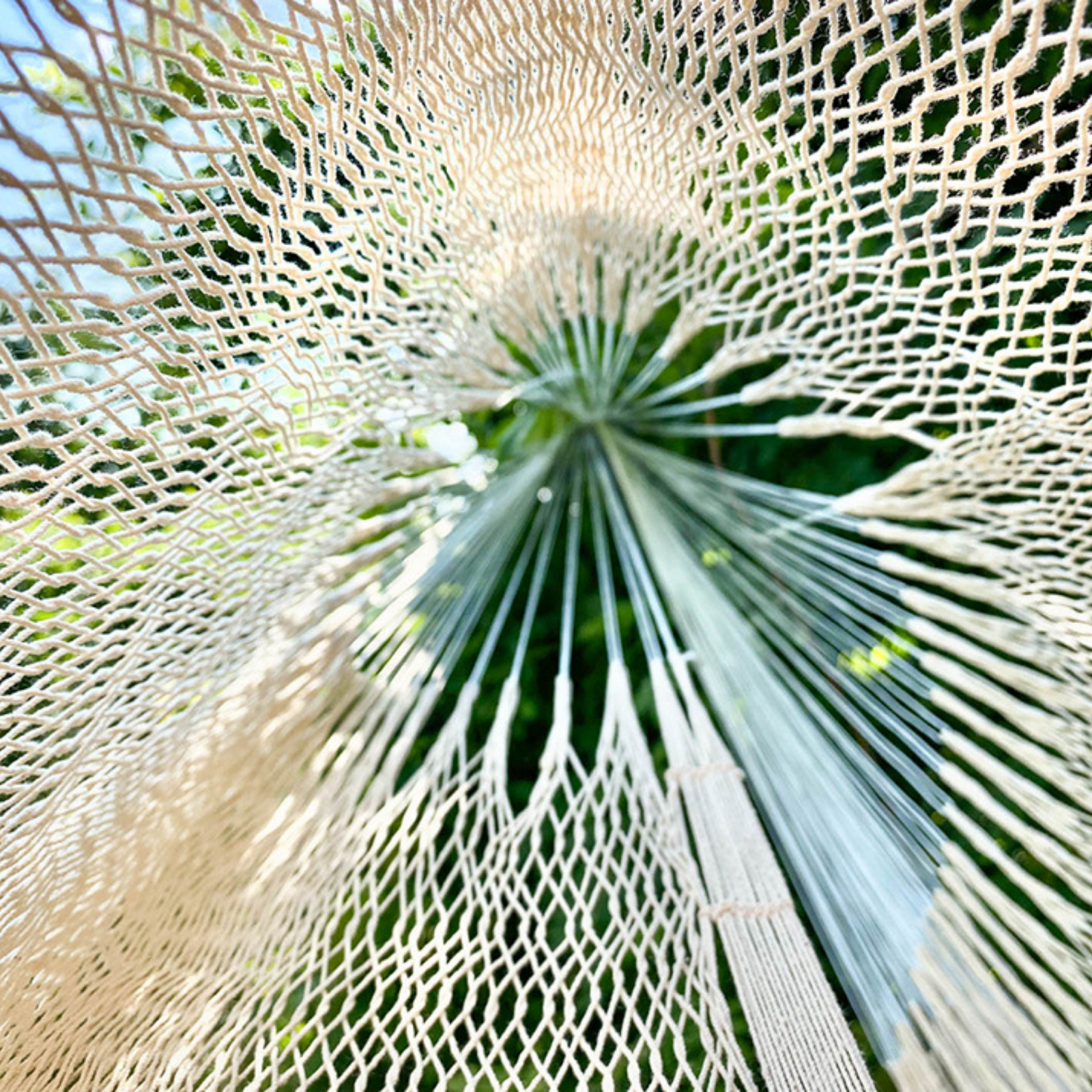 Das feinmaschige Netz passt sich deinem Körper perfekt an und sorgt für schwebenden Komfort – ideal für heiße Tage oder als platzsparende Hängematte für unterwegs.